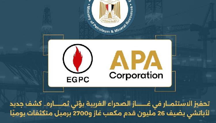 Egypt’s Ministry of Petroleum announced on Thursday that APA Corporation, in cooperation with the Egyptian General Petroleum Corporation (EGPC), achieved a new natural gas discovery in the Western Desert after drilling the SKAL-1X exploratory well in South Khabasha. Initial tests indicate daily production of about 26 million cubic feet of gas and 2,700 barrels of condensate.