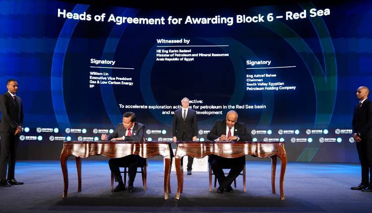 A heads of agreement for the award of Block 6 in the Red Sea was signed between the South Valley Egyptian Petroleum Holding Company (Ganope) and BP Exploration (Delta) Limited, aimed at accelerating exploration and developing petroleum resources in the area.