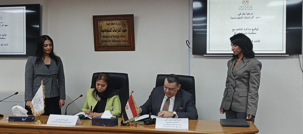 Egypt’s Institute for Diplomatic Studies signed a memorandum of understanding with the Women Development Organisation (WDO), an arm of the Organisation of Islamic Cooperation (OIC), to expand cooperation on training and academic programmes.