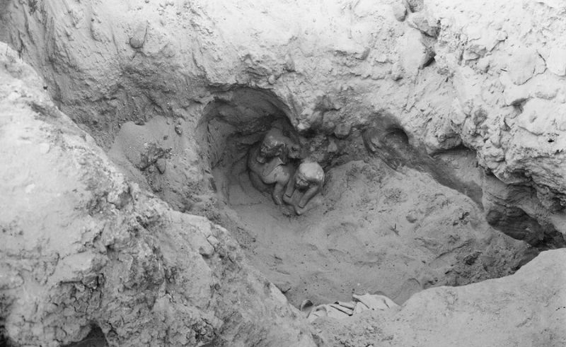 The set of photographs depict the moment a group of statues of King Menkaure were discovered in Giza. The images document the full discovery, step by step.