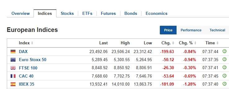 The pan-European STOXX 600 slipped 0.94 per cent by 11:37 GMT. France’s CAC 40 dropped 0.69 per cent, while Spain’s IBEX 35 saw a sharper decline of 1.28 per cent. Germany’s DAX fell 0.84 per cent, and the UK’s FTSE 100 edged down 0.30 per cent.