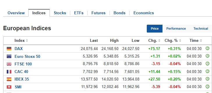 The pan-European STOXX 600 rose 0.02 per cent by 8:00 am GMT. Germany’s DAX led gains with a 0.31 per cent increase, followed by France’s CAC 40 up 0.15 per cent and Spain’s IBEX 35 rising 0.20 per cent. Meanwhile, the UK’s FTSE 100 edged down 0.04 per cent.