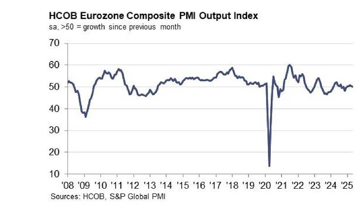 The eurozone economy grew for a fifth straight month in May 2025, but the pace of expansion slowed, while services activity declined and overall demand remained subdued, according to HCOB PMI data released on Wednesday.