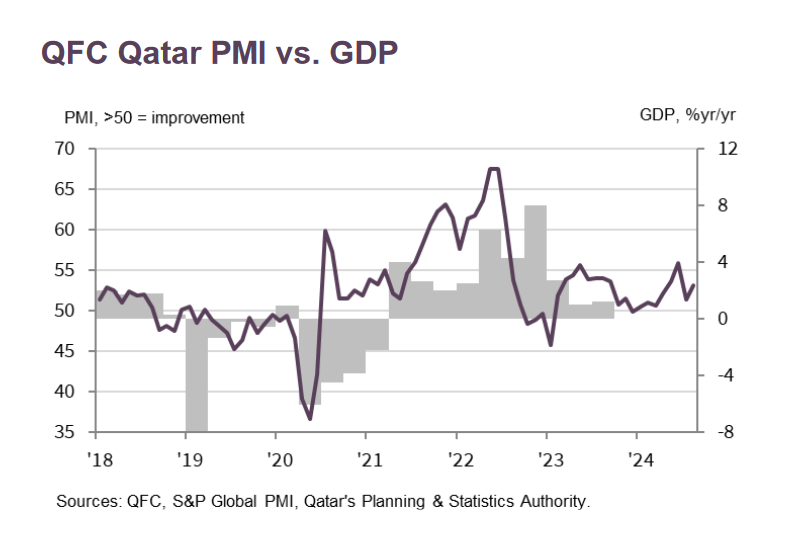 Qatar’s non-energy private sector signalled “an all-round improvement” in business conditions in August 2024, as per the latest Purchasing Managers’ Index (PMI) survey from Qatar Financial Centre (QFC) and S&P Global. The PMI rose to 53.1, up from July’s 51.3, surpassing the long-term average of 52.3, driven by strong job growth and a surge in new orders.