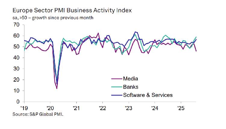 European banks topped sector growth rankings in August, posting their fastest expansion since June 2024, according to S&P Global’s Europe Sector PMI data on Wednesday.