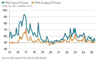 On the inflation front, input costs rose at the softest pace in three months, and output price inflation eased sharply from May’s seven-month high, offering some cost relief for businesses.