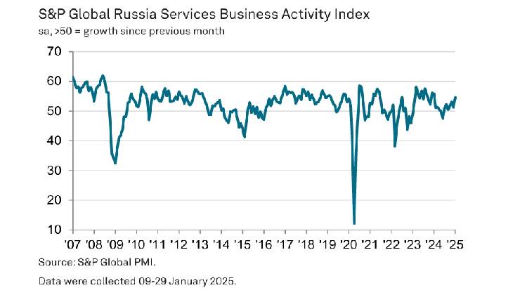 Russia’s services sector recorded its strongest expansion in a year in January, with the S&P Global Russia Services PMI rising to 54.6 from 51.2 in December. The latest S&P Global data signalled robust output growth, driven by improved demand conditions and a sharp rise in new orders.