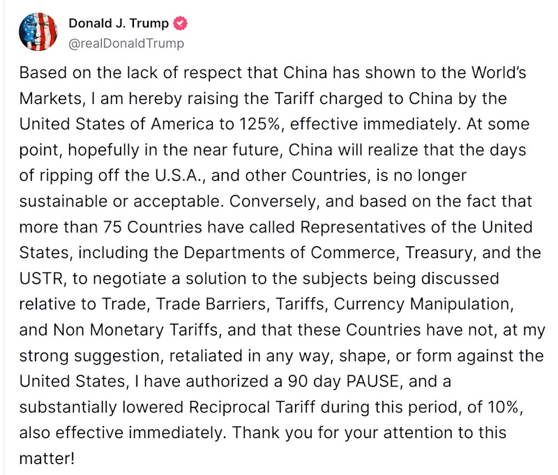 URGENT: Trump unveils 90-day tariff pause, excluding China