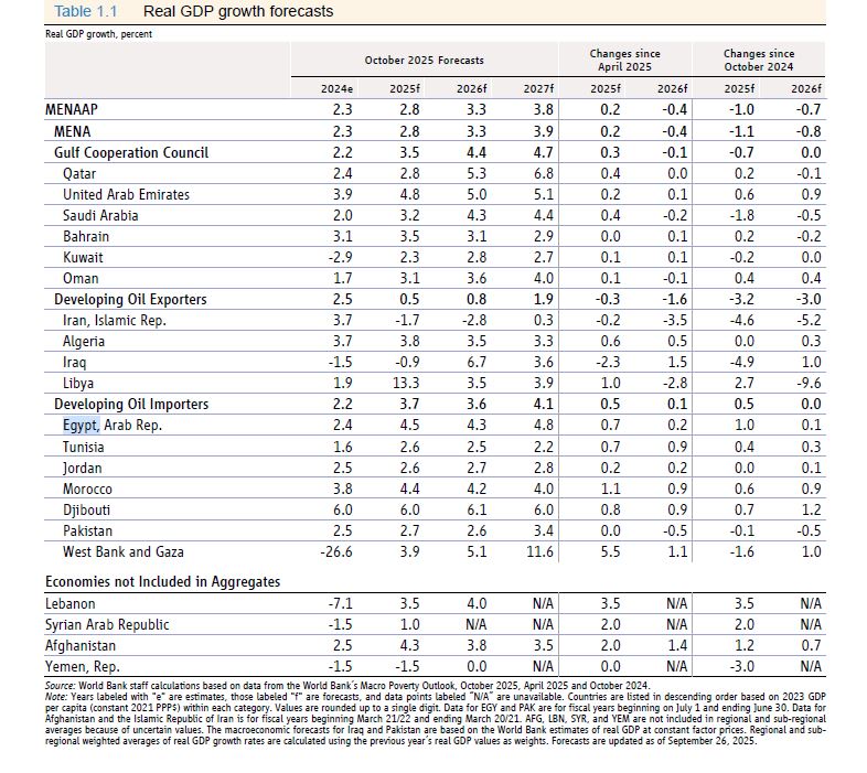 In its MENAP Economic Update – October 2025, the World Bank cited stronger reform momentum, renewed external support, and rising investment activity.